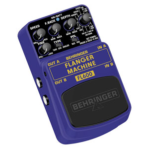 The FL600 features more than the usual flanger controls. Twirl dedicated Speed, Feedback and Depth knobs to whip up a unique flange...then further tweak the tone with a Tape / Digital / Analog Type switch. What really drives each effect model is the Real Sound Modeling (RSM) processor's state-of-the-art DSP technology, emulating actual acoustic environments to give you more acoustic fidelity. A high-visibility blue LED indicates power status and battery condition; the sturdy footswitch preserves signal integrity in bypass mode. The FL600 pedal operates on a 9 V battery or our BEHRINGER PSU-SB DC power supply.