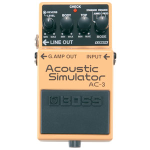 There are not many musicians who enjoy lugging both electric and acoustic guitars to rehearsals or gigs, so we welcome the Boss AC-3 Acoustic simulator with open arms. using the Boss COSM technology, this compact pedal can produce a beautiful aray of acoustic tones through an electric guitar, with a fine control and built in reverb, this pedal offers nothing less then class.